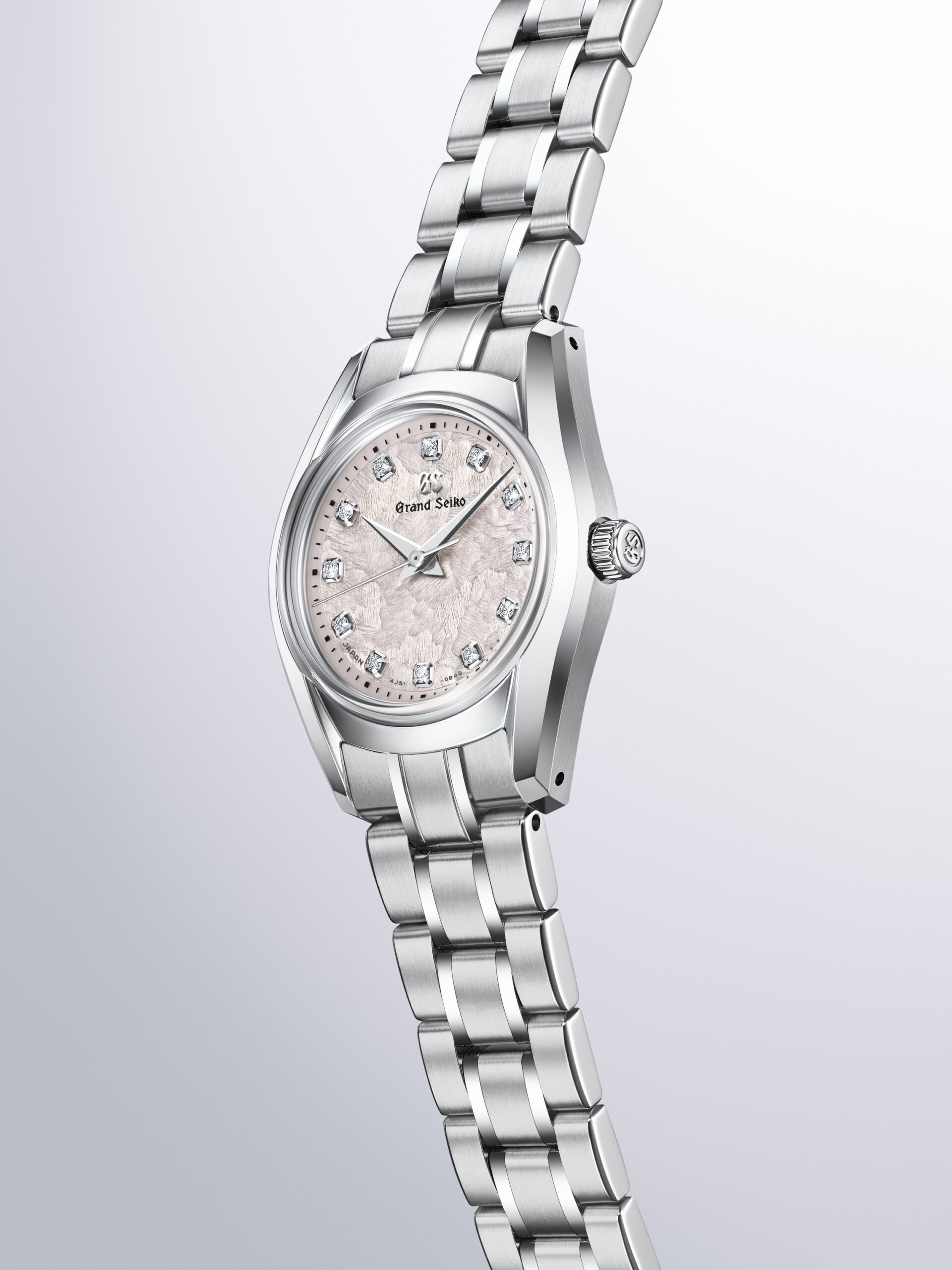 ด้วยผลงาน STGF387 และ STGF389 สองรุ่นใหม่ล่าสุดนี้เอง Grand Seiko ได้นำเสนอความงดงามแห่งฤดูใบไม้ผลิผ่านเรือนเวลาขนาดเล็กแบบควอตซ์ ขนาดเส้นผ่านศูนย์กลางเพียง 26 มม. พร้อมหลักชั่วโมงประดับเพชร หน้าปัดแต่ละรุ่นได้รับการออกแบบอย่างประณีต ถ่ายทอดความงามในแง่มุมที่แตกต่างของฤดูใบไม้ผลิ — ทั้งความอ่อนหวานของกลีบดอกซากุระที่ลอยอยู่บนผิวน้ำ และความพลิ้วไหวของสายลมอ่อนในแสงแดดยามบ่าย